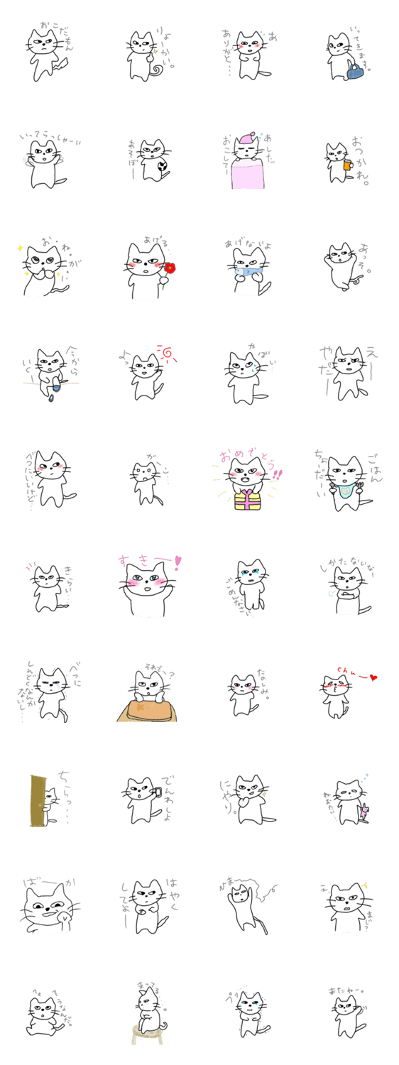 白ネコのあいうえお・・・ってるスタンプ