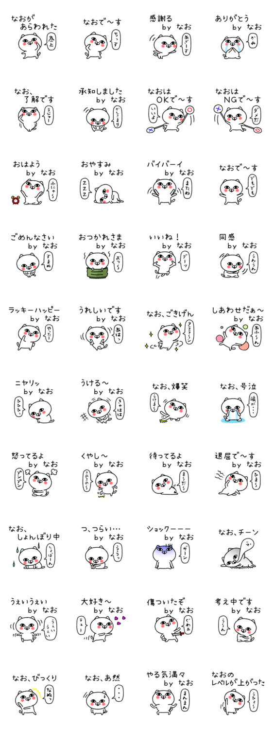 奈央、直、菜緒、奈緒…、全国の「ナオ」さん専用の猫キャラ名前スタンプです。日常会話の基本セットです。「ちゃんねこシリーズ」です。