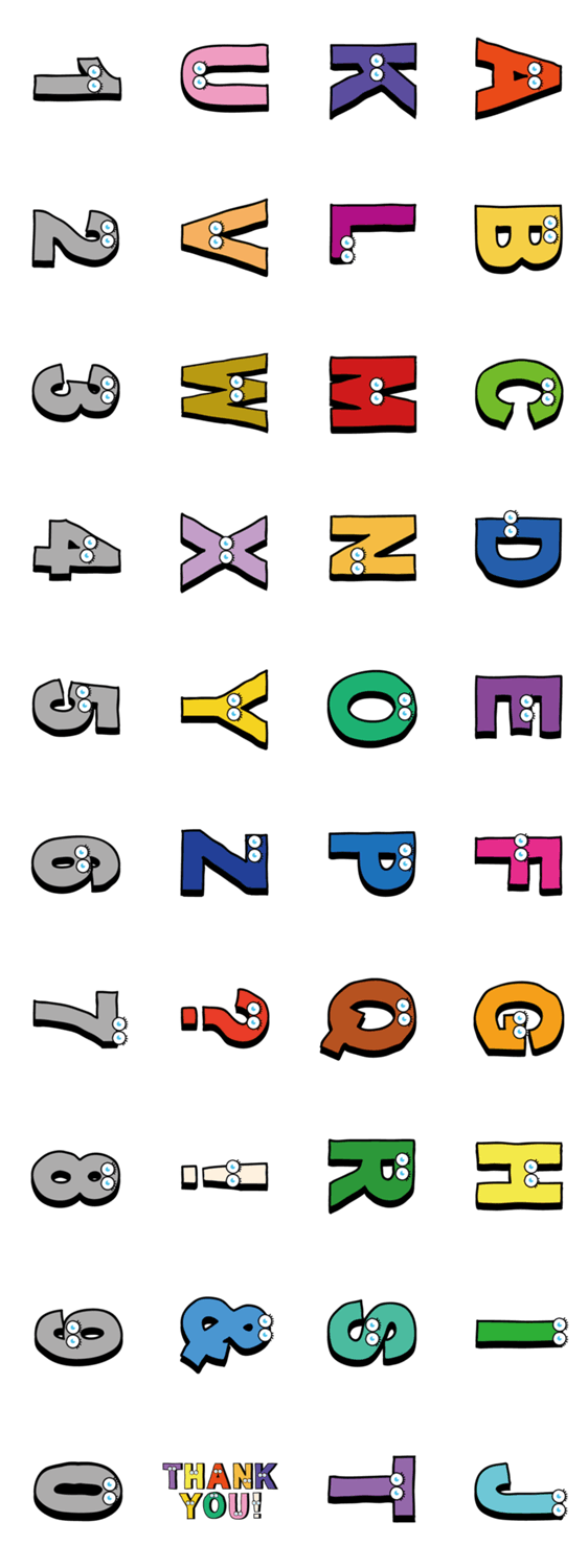 横型アルファベットで略語や簡単な文章がスタンプできる連投スタンプです。