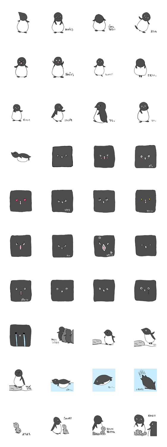 アデリーペンギンのスタンプです。泳いだり、ジャンプしたり、子育てをしたり…しています。