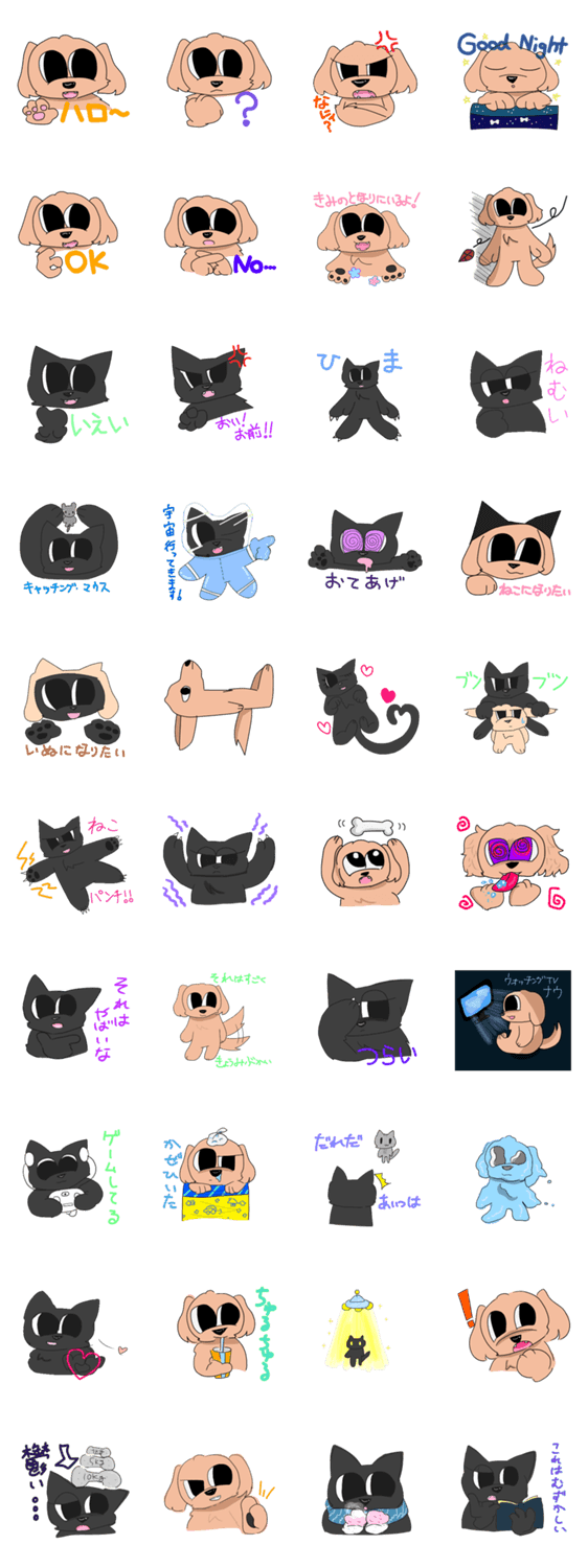 スタンプ説明 くろねことゴールデンレトリバーのスタンプです。