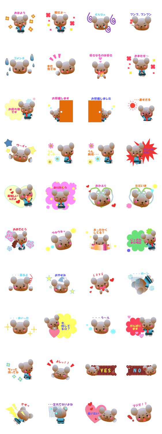 くまのスタンプです。日常でよく使う言葉を集めました。くま好きの方に。