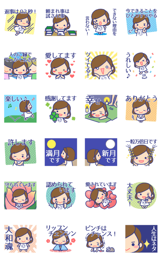 | スタンプ説明 | 元気と勇気を与える言葉がいっぱい!大切な人を励ましたい時や、もっと仲良くなりたい時に使ってね! |