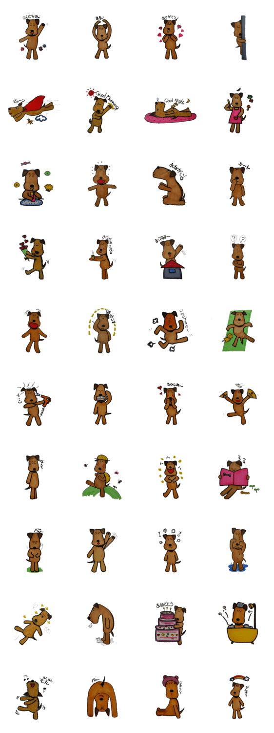 はじめまして!元気印、エアデールテリアのピッピです。仲良くしてね。 使いやすい、かわいいスタンプがいっぱい!!ぜひお友達になってね。