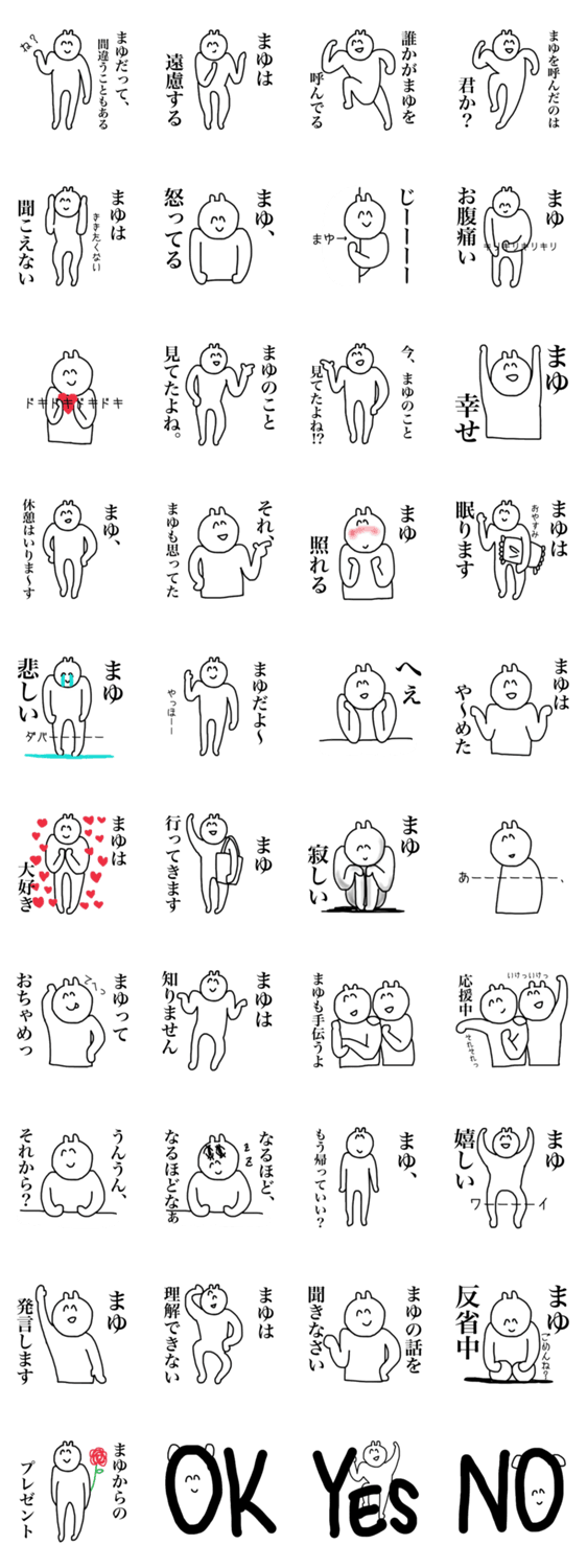 まゆのためのまゆ専用スタンプ。ゆるーいまゆさんにはぜひ。プレゼントにもどうぞ。