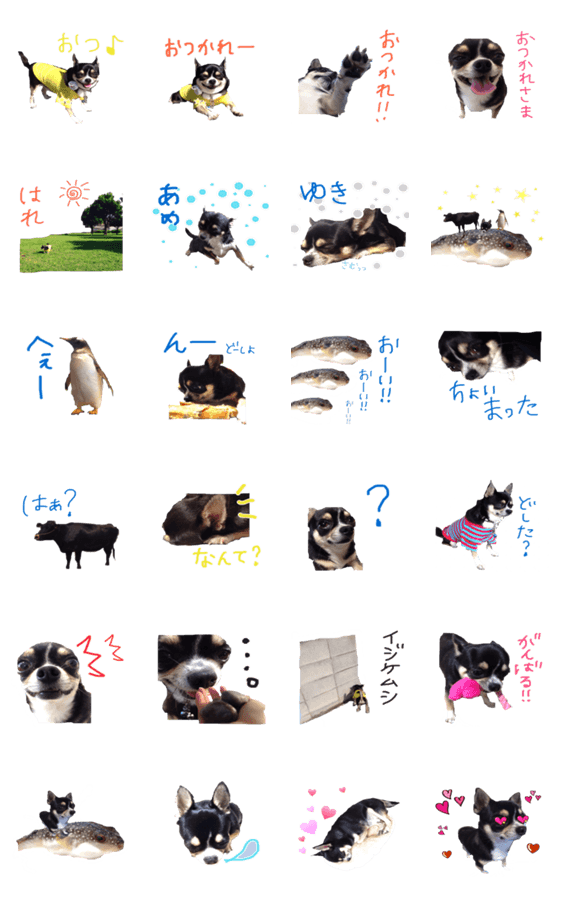 犬(チワワ)のスタンプです。わんこ好きさん♡たのしくいやされてください♪りるわんのおともだち登場です!