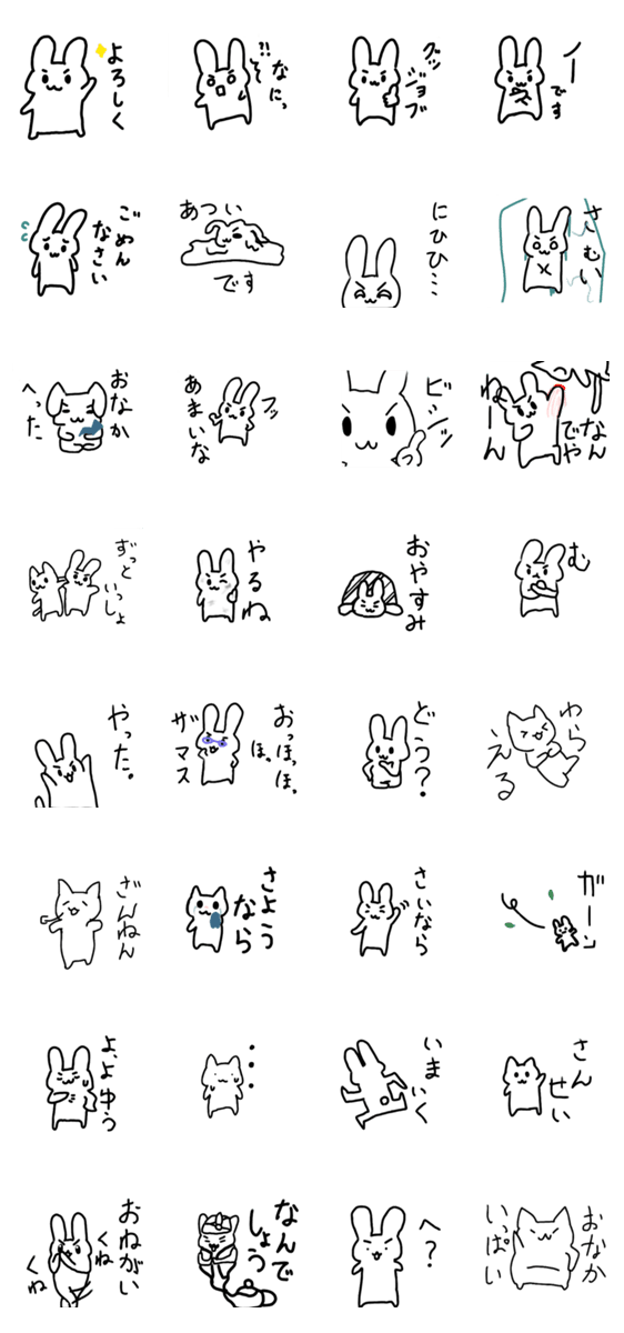 現役小学四年生の女子が作ったスタンプ!ウサギとねこが皆んなにメッセージを送ります。