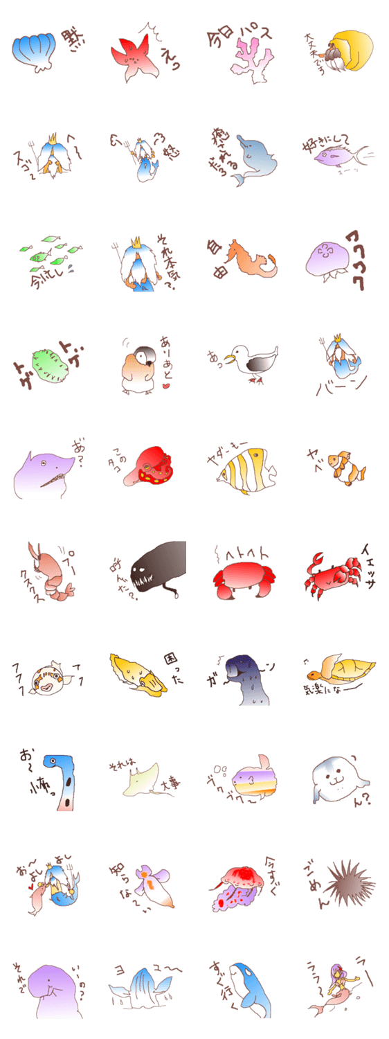 スタンプ説明 ポセイドンと海の楽しい仲間たち