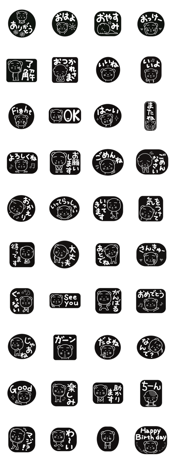 モノトーンのくま。白黒だけど可愛い、シンプルだから分かりやすい。黒地に白でよく見える。デカ文字スタンプです。