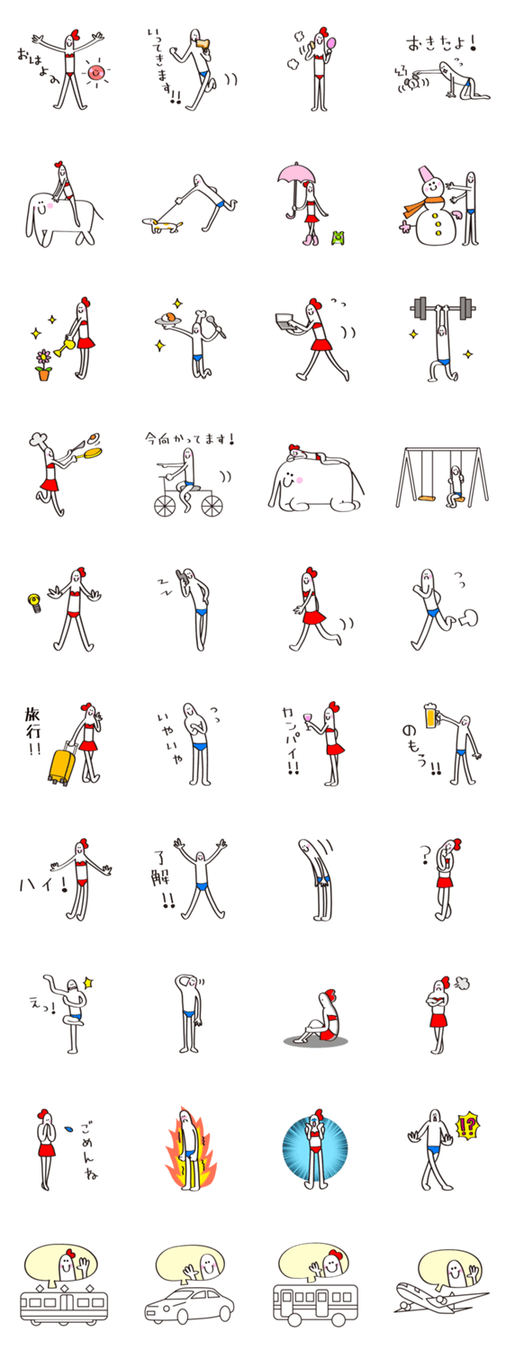 | スタンプ説明 | 夏に大活躍?ビキニの日常スタンプが登場!!水着を着た可愛いキャラクターがあなたの心の声を代弁します。 |