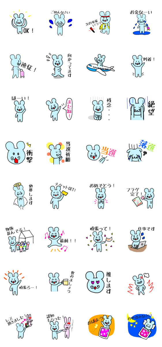 アイドルが大好きなねずみのスタンプです。オタク同士で使えるスタンプとオタクじゃない人へも送れる日常会話スタンプ両方あるのでいつでも使えます!