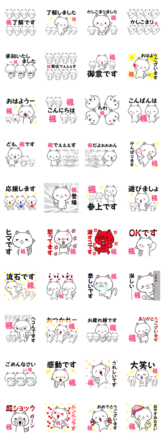 ねこのスタンプで、楓(かえで・カエデ)さん用です。