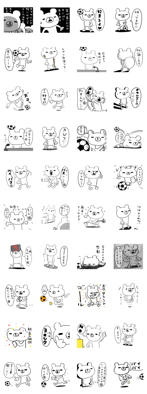 サッカー好きなゆるいクマさんが使いやすいスタンプになりました。サッカーしてる人に使えるスタンプ多めです。日常会話やビジネスにもどうぞ。