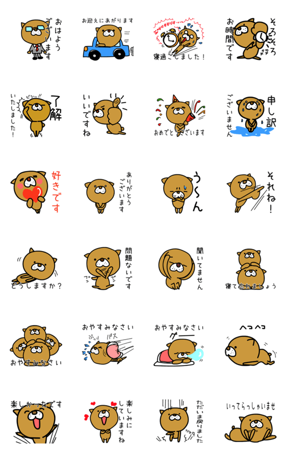 敬語で日常で使いやすいスタンプです(^^)犬なのか猫なのか熊なのかは不明・・・。使う動く!