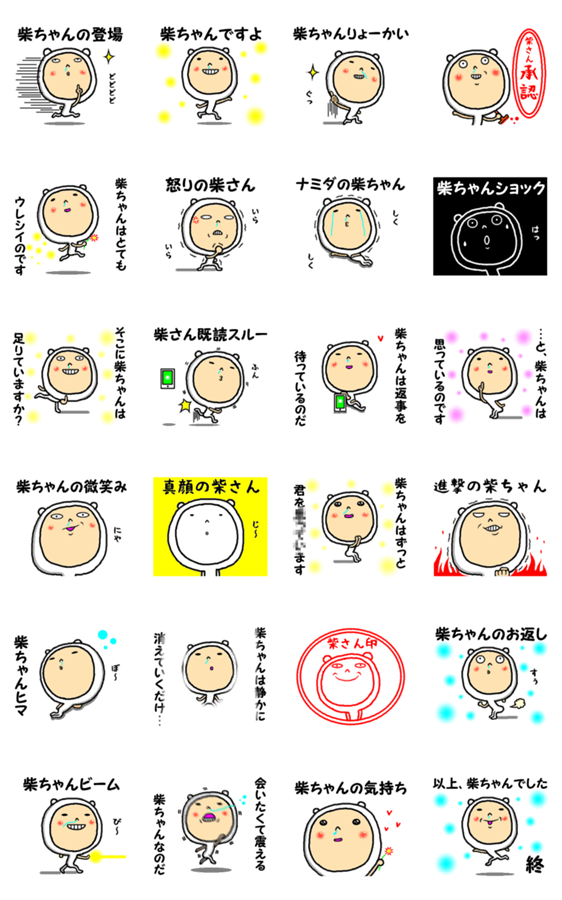 全国の柴ちゃんが使える柴さんスタンプです。柴田さん/柴本さん/柴山さん/柴咲さん/柴野さん/柴木さん/柴谷さん/柴垣さん/柴内さんにおすすめ。他の名字・名前も展開中
