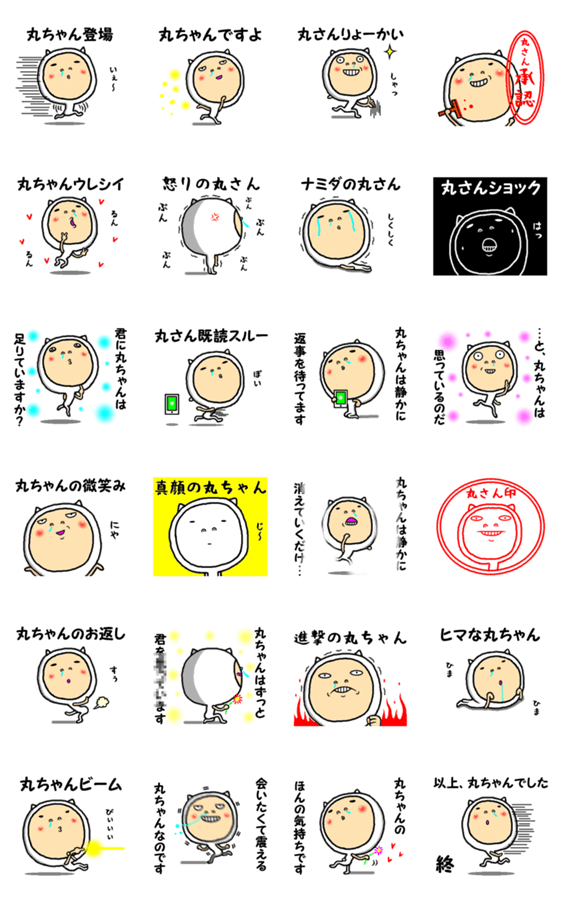 全国の丸ちゃんが使える丸さんスタンプ。丸さん/丸川さん/丸山さん/丸田さん/丸井さん/丸中さん/丸西さん/丸中さん/丸宮さん/丸池さん/丸岡さん/丸木さんにおすすめ。