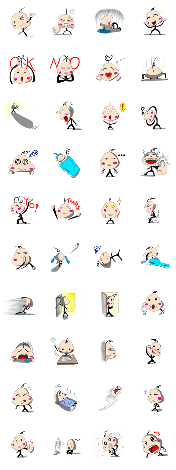 一本の毛が生えているにんげん?のスタンプ。一本毛とユニーク顔を日常で使ってみてはどうでしょう!