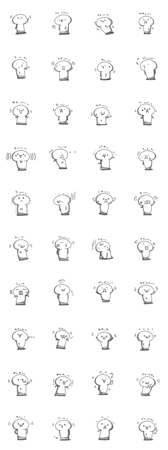 普段使っている顔文字を人型スタンプにしました。家族や友達に気軽にお使いください。
