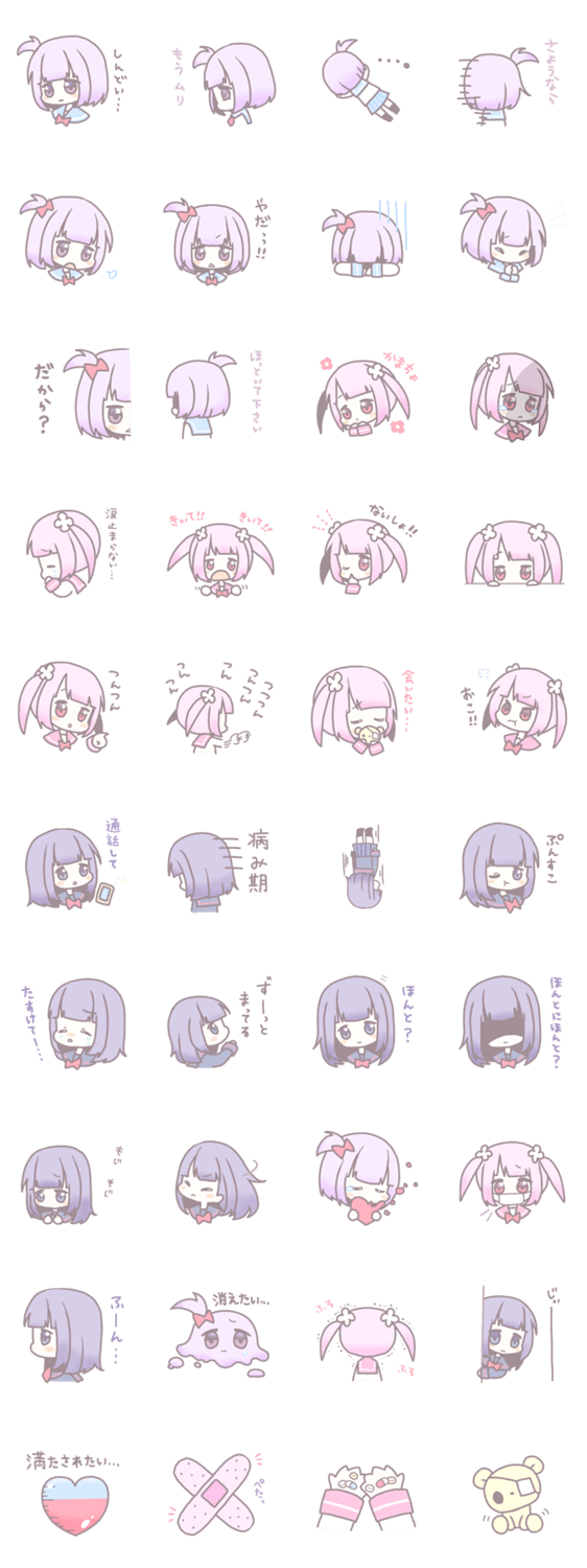 寂しがり屋の女の子たちスタンプ。 メンヘラだけどかわいいでしょ? ヘラったときも、そうじゃないときも使ってほしいの。。。!!