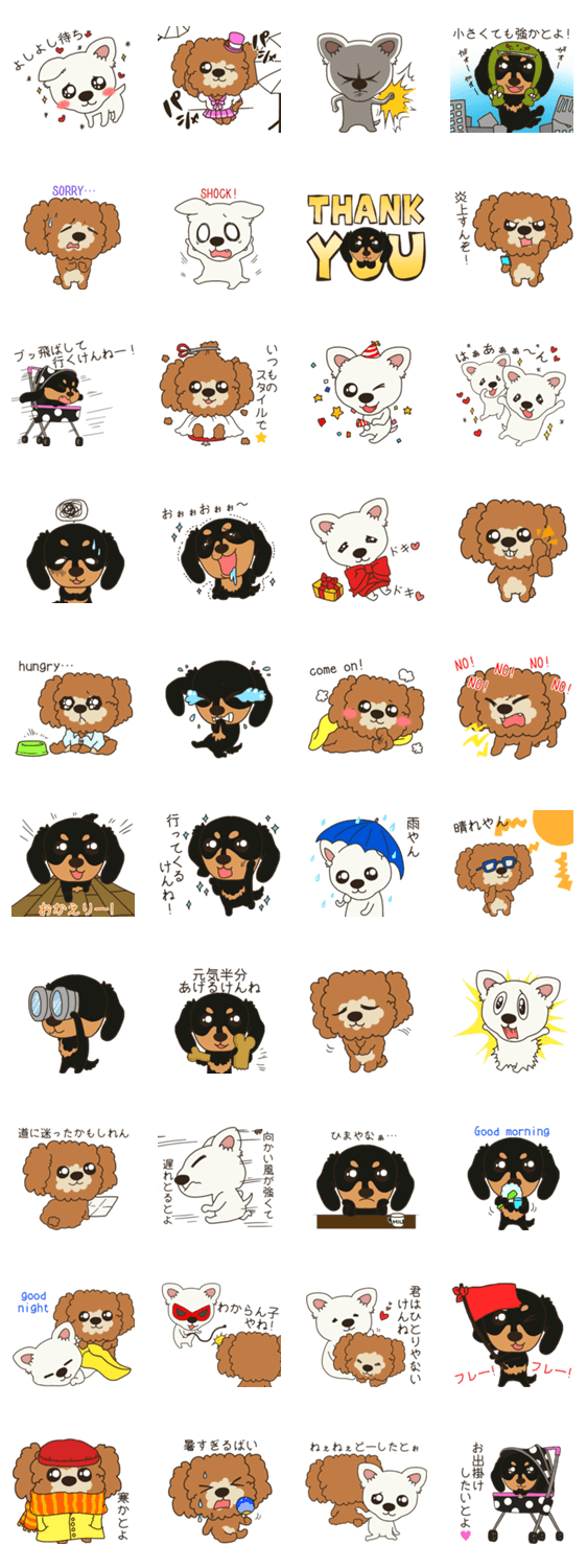 | スタンプ説明 | 犬達と暮らす幸せな毎日。犬達の思いを友達や家族に伝えてみよう。 |