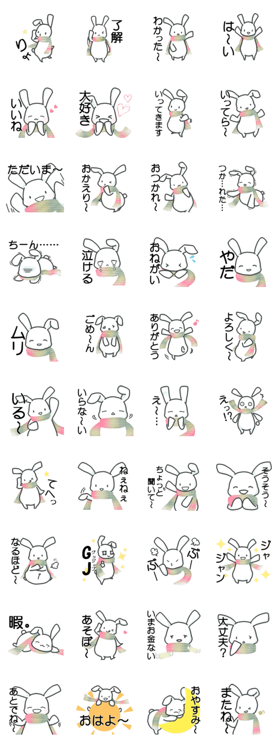 おへんじ+αを集めたうささんスタンプ。 マフラー振りかざしてゆるくおへんじするよ♪