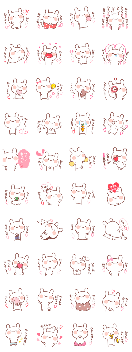博、宏、弘、洋、寛、博司、宏司、ひろくん、ちゃんなど、あなたの大切なひろしさんへ送ってください。カップル・お友達向け名前スタンプ。