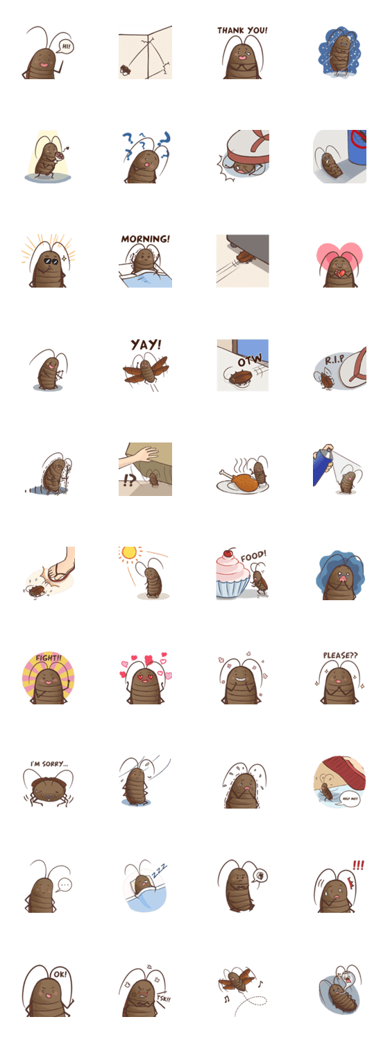 | スタンプ説明 | Funny Cockroach Stickers to tease your friend in line conversation |