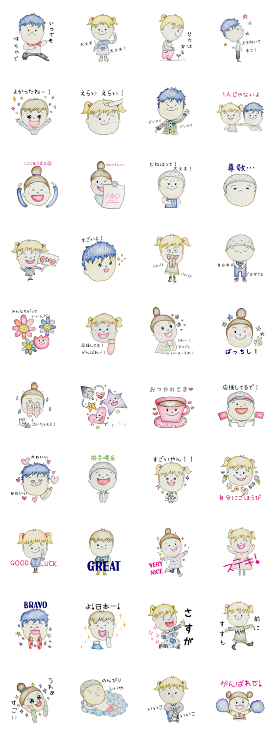 塗り絵スタンプ 3ー元気が出るスタンプ -LINEスタンプマニア