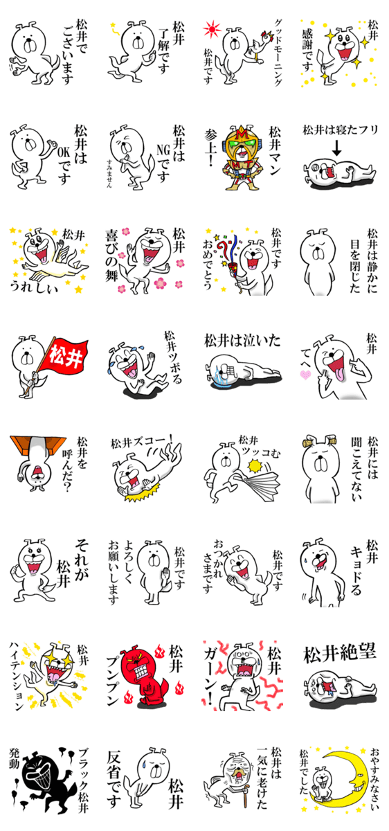 | スタンプ説明 | 全国の名字が松井さん、お待たせしました。松井さん本人が使う名前、苗字スタンプです。 |