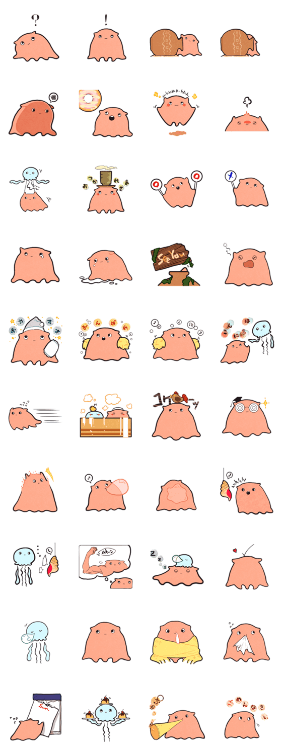 めんだこ と ともだちのくらげ の シュールで愉快な 可愛いスタンプです。(より見やすく、可愛くしました。)