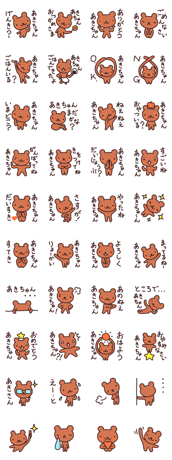 あなたの可愛いあきちゃんに、毎日送れるスタンプです。送られたあきちゃんは思わずほっこりしますよ。あきちゃんなあなたは、お母さんにプレゼントするのもおすすめです。
