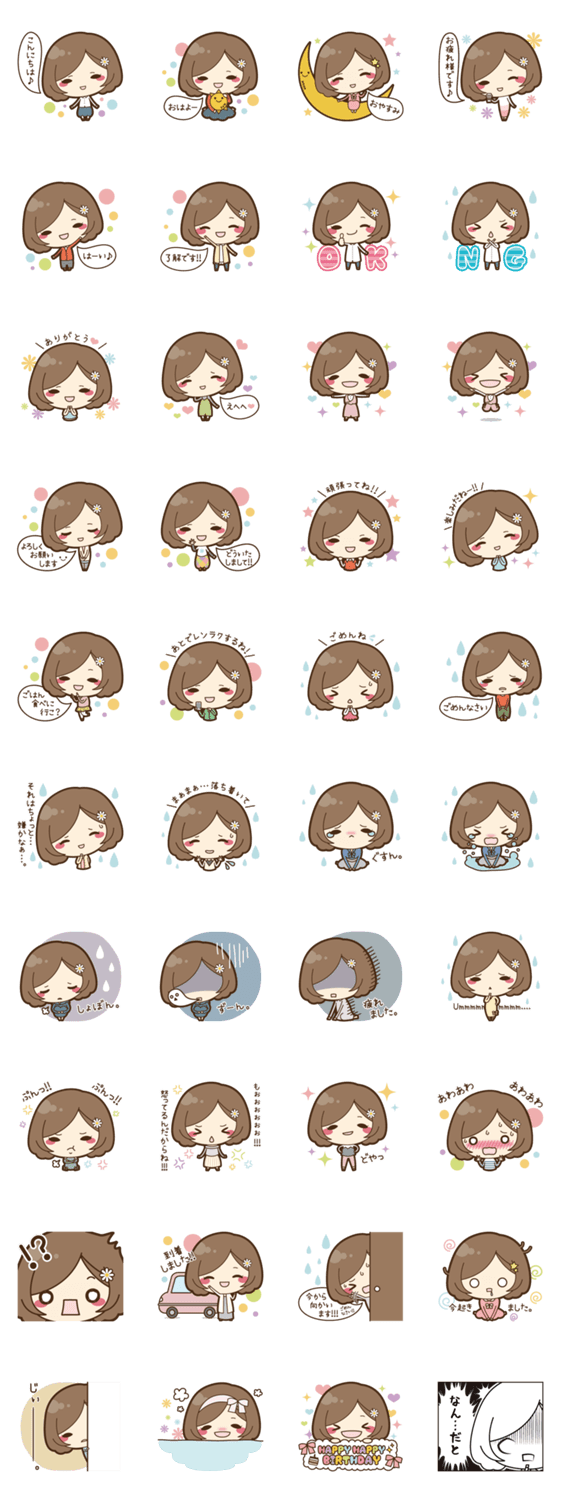 ゆるっとしたオシャレで可愛い女の子"はなちゃん"のスタンプです