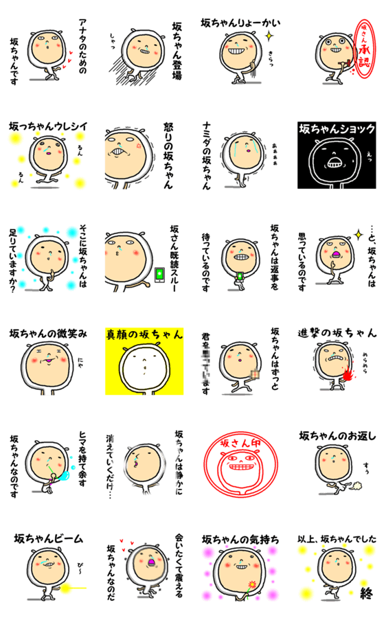 坂ちゃんが使える坂さんスタンプ。坂田さん/坂本さん/坂下さん/坂井さん/坂口さん/坂野さん/坂倉さん/坂藤さん/坂部さん/坂上さん/坂西さん/坂内さん/坂岩さんにおすすめ