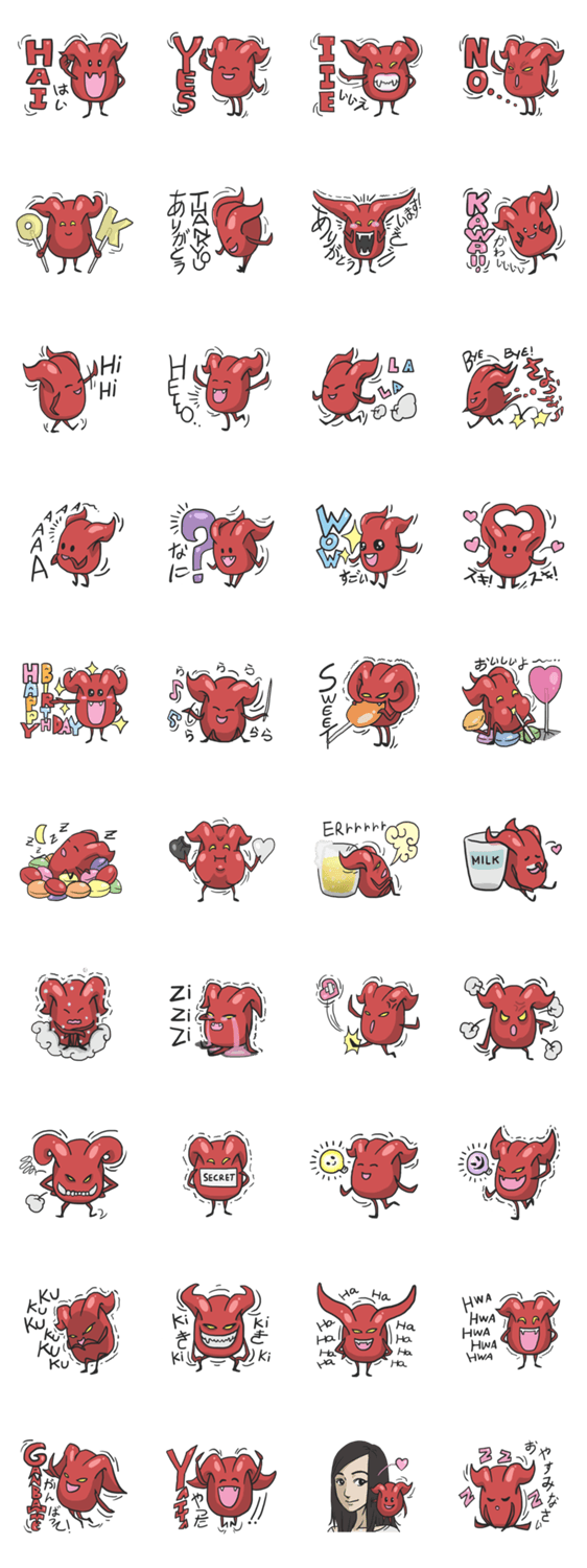 | スタンプ説明 | born from the combination of devil blood and jelly, De-chan it a life jelly that have true power of devil, now he live in AsBTown with some japanese girl |