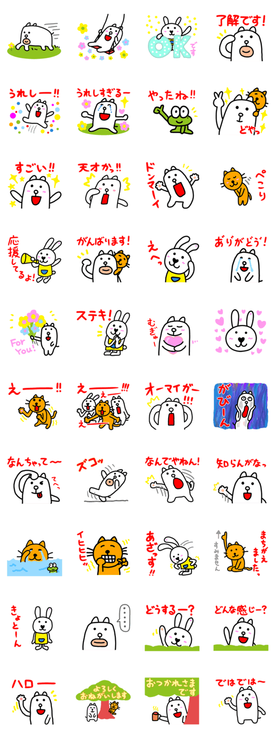 白ネコのあいうえお・・・ってるスタンプ
