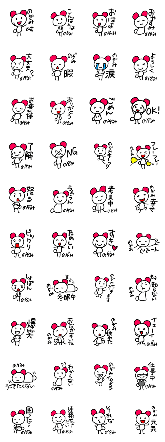 希ちゃんも、希美ちゃんも、望実ちゃんも、夢ちゃんも、未来ちゃんも、み~んなののぞみちゃんスタンプ!365日毎日のぞみちゃんスタンプでLINEを楽しもう♪