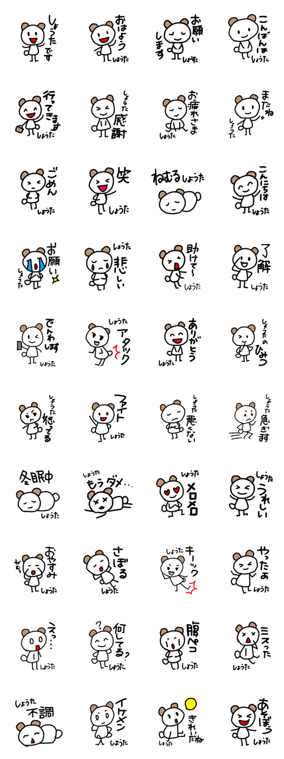 翔太くんも、将太くんも、祥太くんも、翔大くんも、章大くんも、み~んなのしょうたくんスタンプ♪365日しょうたくんスタンプでLINEを楽しもう♪