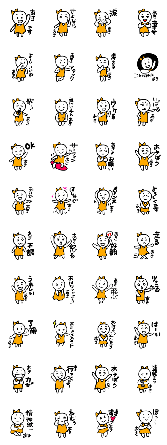 有希ちゃんも、秋ちゃんも、亜紀ちゃんも、有紀ちゃんも、亜季ちゃんも、み~んなのあきちゃんスタンプ!365日毎日あきちゃんスタンプでLINEを楽しもう♪