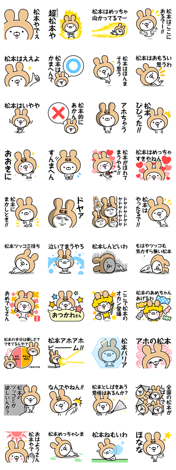 松本さん用の方言スタンプ・名前スタンプです。まつもとさんが使える関西弁・大阪弁のうさぎ。マツモトさんは是非。