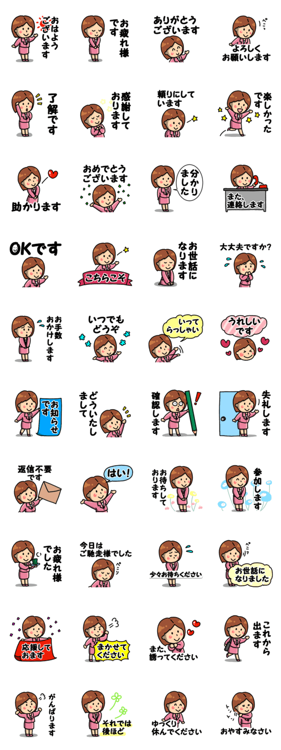 スーツを着た女の子のスタンプです。お仕事や真面目なシーンでご使用ください。