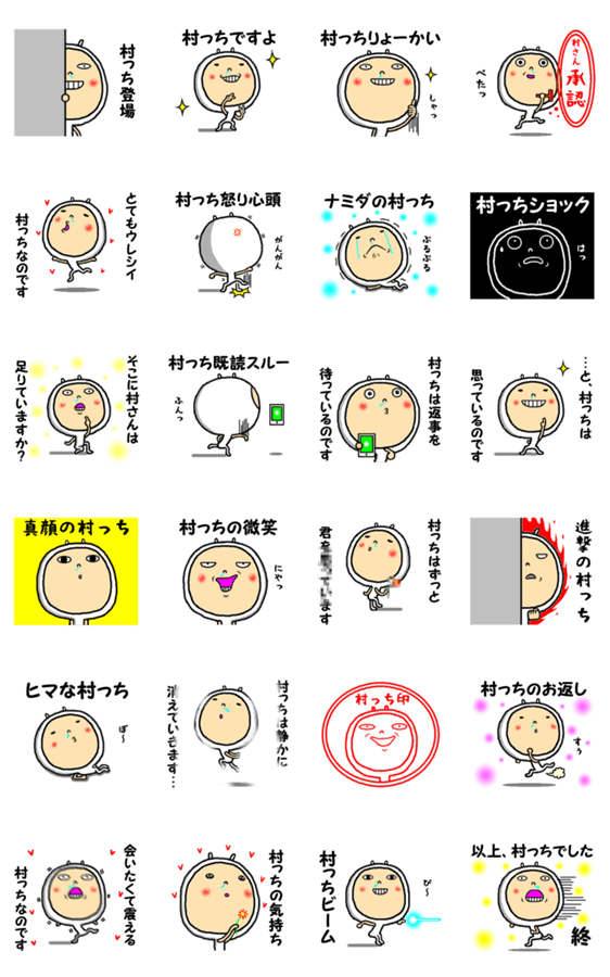 全国の村っちが使える村ちゃんスタンプ。村田さん/村井さん/村山さん/村野さん/村上さん/村松さん/村木さん/村西さん/村北さん/村中さん/村川さん/村尾さんにおすすめ