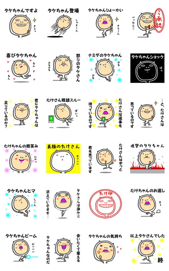 たけちゃんが使えるタケさんスタンプ。武田さん/竹下さん/武本さん/武井さん/武野さん/武野さん/竹田さん/竹本さん/竹下さん/たけしさん/たけひろさん/竹迫さんにおすすめ