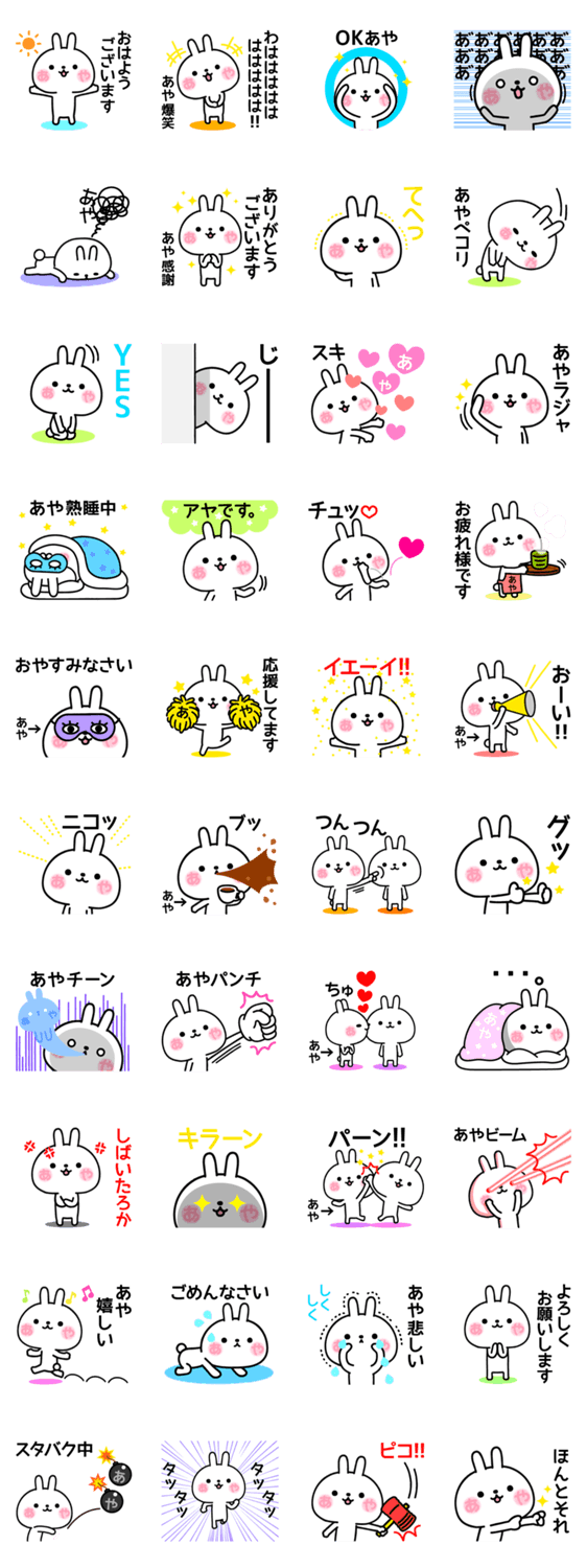 あや/AYA(あやちゃん、あやの、あやな、あやか、あやこ、綾、彩、亜弥・・・)さんたちが使う専用名前スタンプです。【スタンプ40個入り】