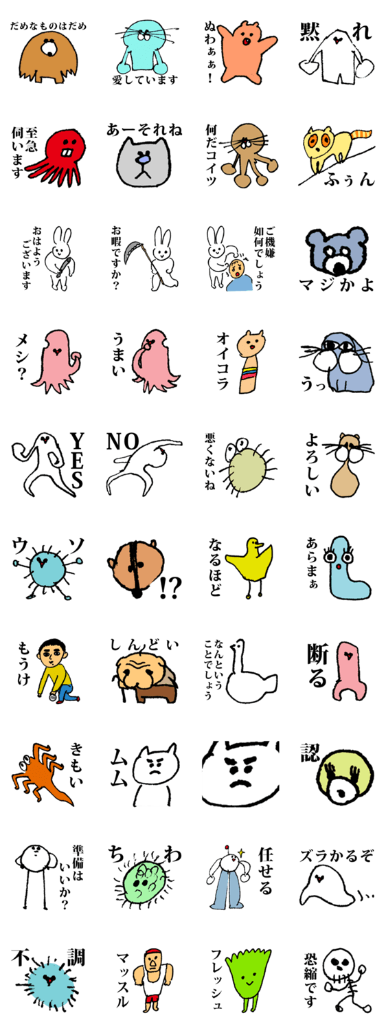 ノートの隅でお蔵入りになっていたキャラ達の敗者復活スタンプです。