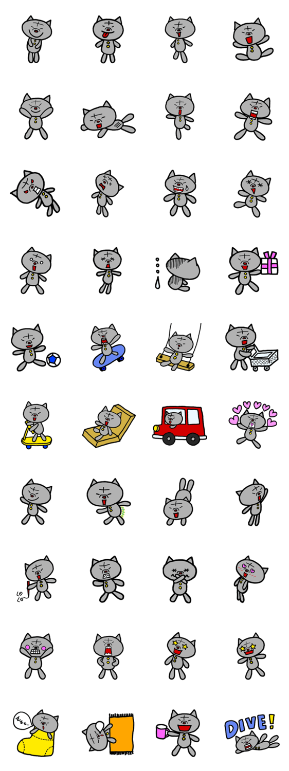 グレーのオオカミのぬいぐるみのスタンプです。様々な動きをしています。