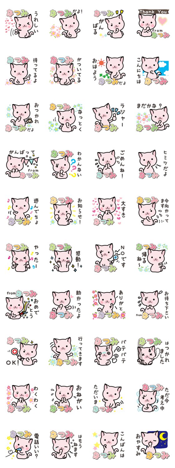 やさしいハム色のねこを、ほんわか名前スタンプにしました「ハムねこ」です。今回はすべてのなつみさん用に作りました。なつみさんへのプレゼントにもどうぞ。