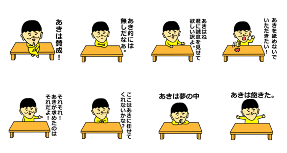 名前にあき(アキ)がつく方(あきひろ,あきお,あきひこ,あきら,あきと 等)や苗字(名字)にあき(アキ)がつく方(秋山,秋田,秋本,秋川,秋野 等)が使える名前スタンプ4です。