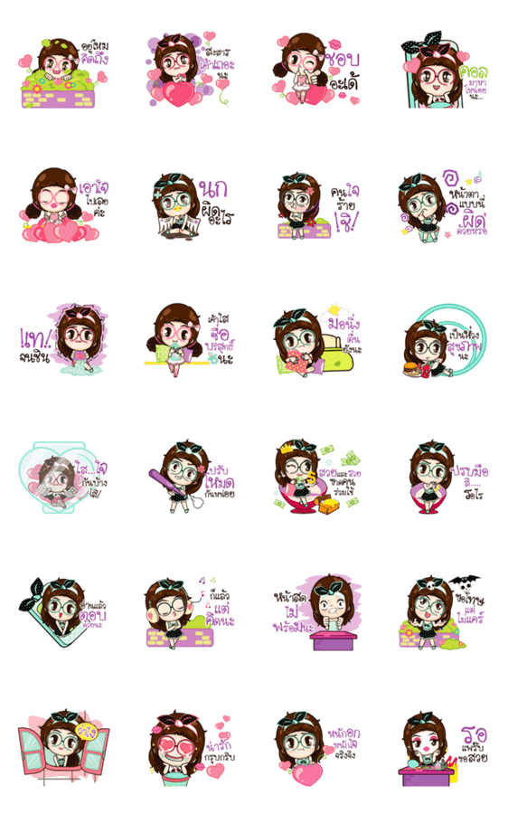 Kaem Bum Glasses lovely girl stickers are here to make every chat a cute and colorful one!