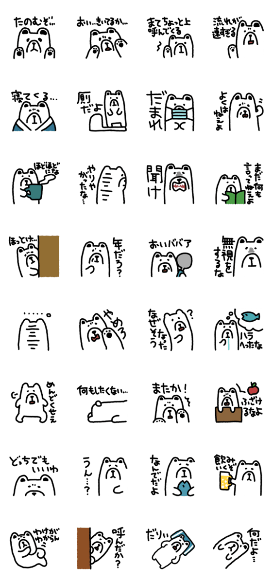 ややキレ気味なシロクマのスタンプです。 気心の知れた相手とのトークにお使いください。