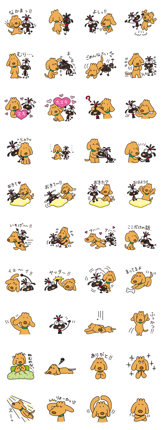 | スタンプ説明 | ちょびっとマンガ的スタンプ第5弾は、プードルのムーさんと友だちの茶色くんだよ。 |